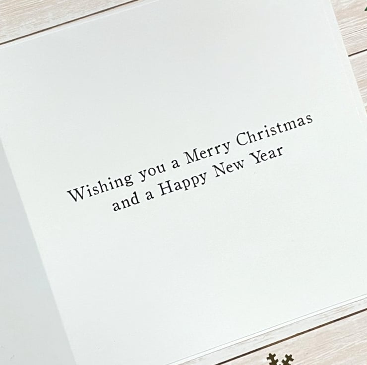 Standard Sentiment: This will be printed in the centre of the insert and will differ for each listing. For this card the sentiment will read: "Wishing you a Merry Christmas and a Happy New Year."