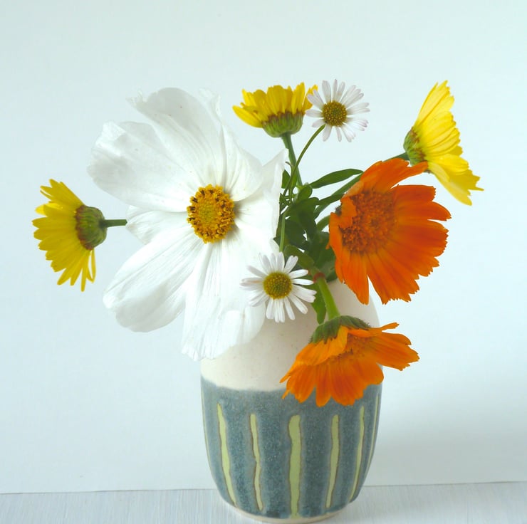 This little bud vase has been hand thrown on the wheel , decorated and glazed in my pottery in Winchester.