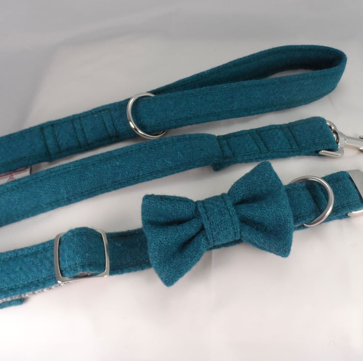 Plain Dark Turquoise Harris Tweed Dog Lead