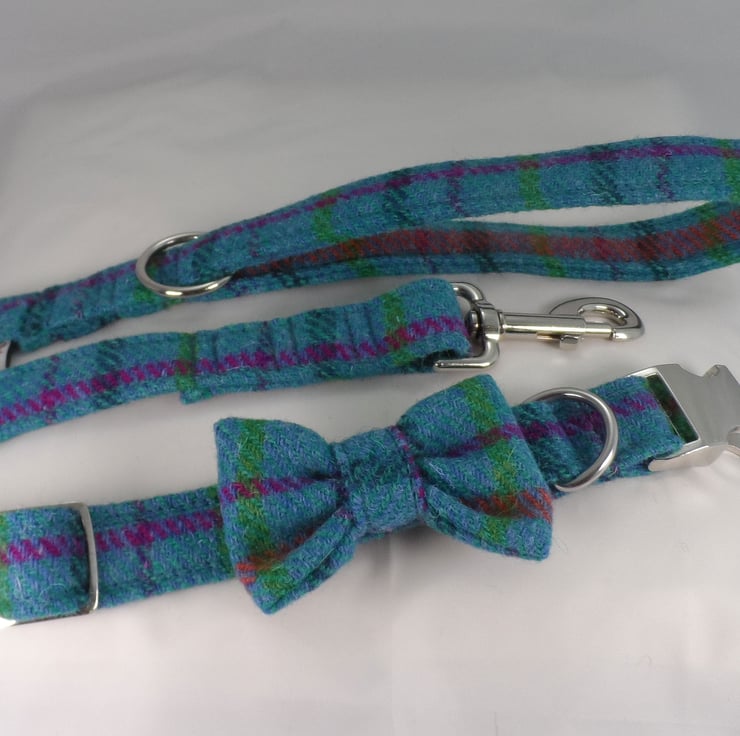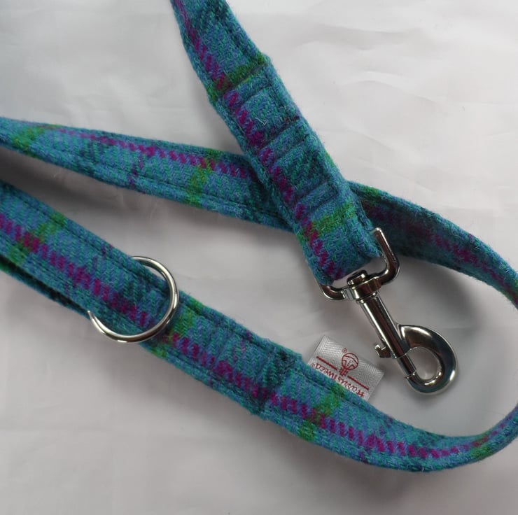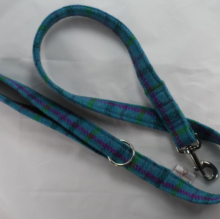 Dark Turquoise Tartan Harris Tweed Dog Lead