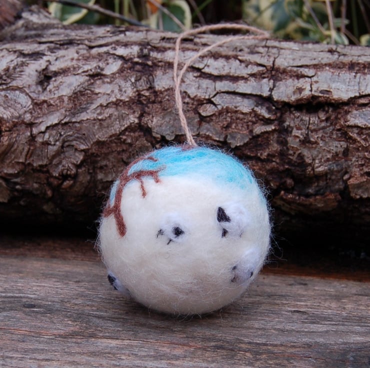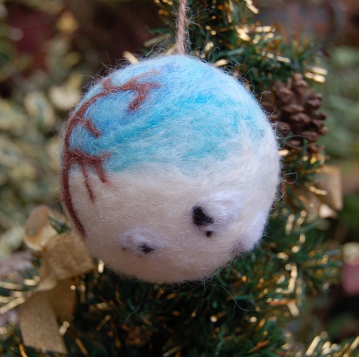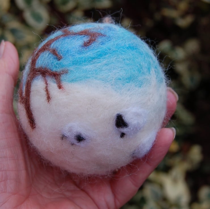 I have used unspun wool fibre and a sharp needle to produce snow scene over a polystyrene ball,.
