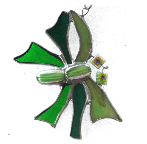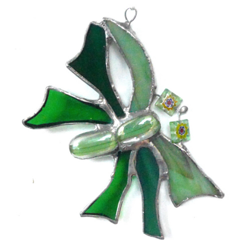This is a stained glass suncatcher made using the Tiffany copper foil technique.