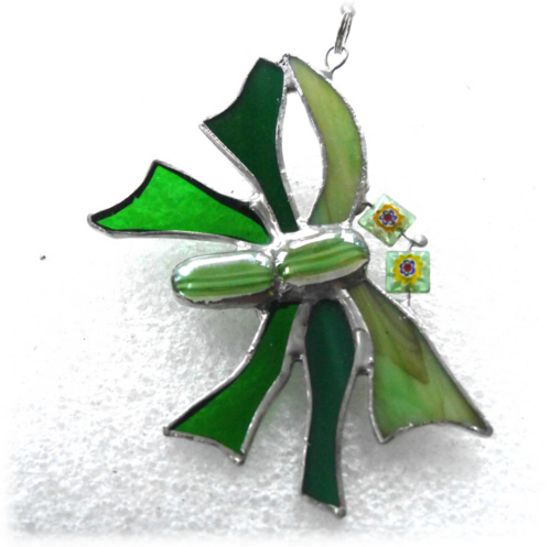 The suncatcher is 12 x 10cm and hangs from a little chain which is securely attached to the top of dragonfly by a soldered wire ring.