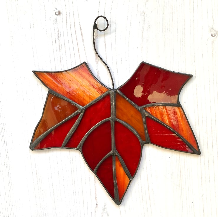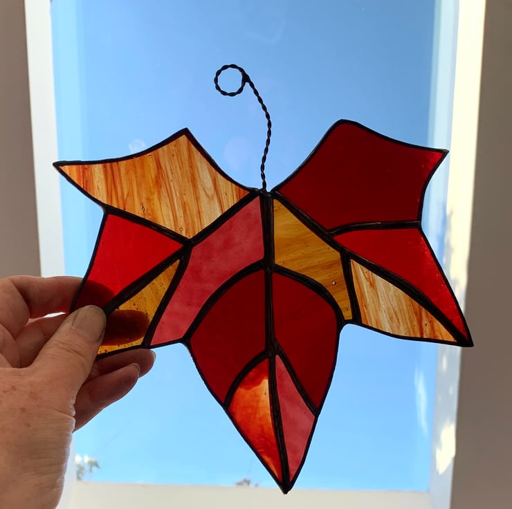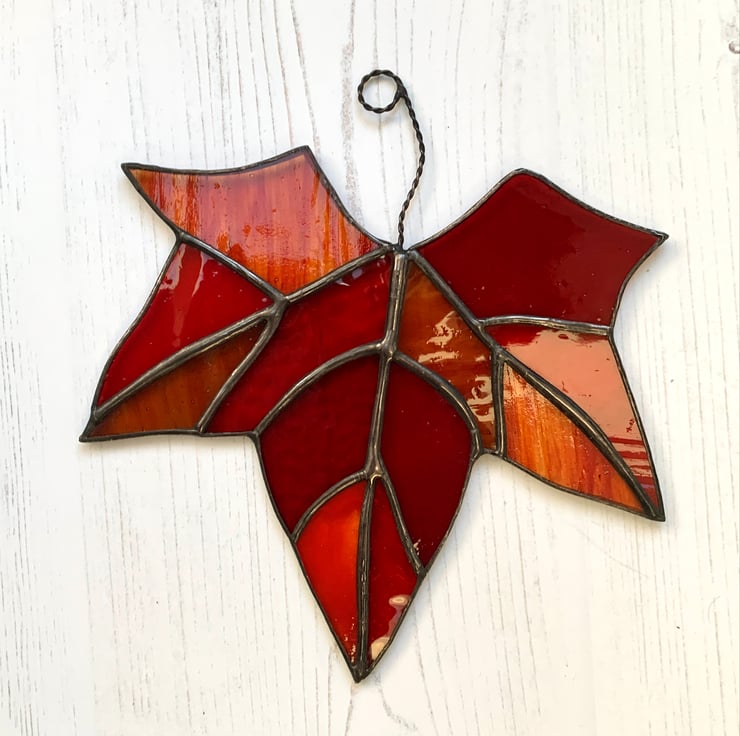 These have been made from a selection of different types of red stained glass. Each piece of glass has been hand cut, ground, washed, foiled and soldered together before being washed again. I have applied a patina to blacken the solder and then polished.