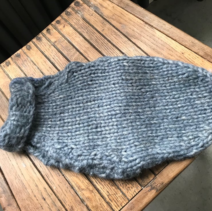 Handknitted small dog jumper. Soft 100% wool in smoky blue shade.