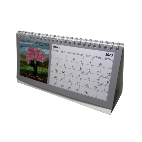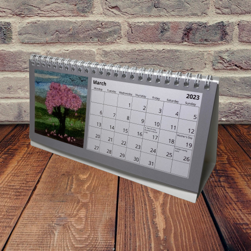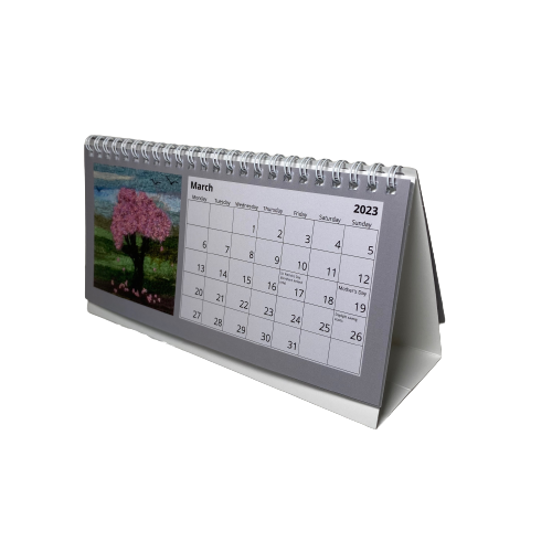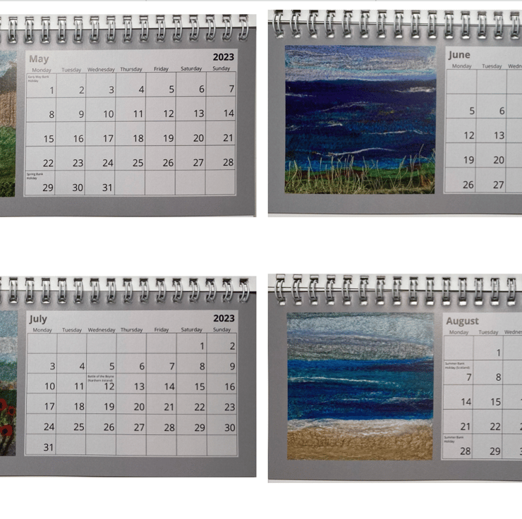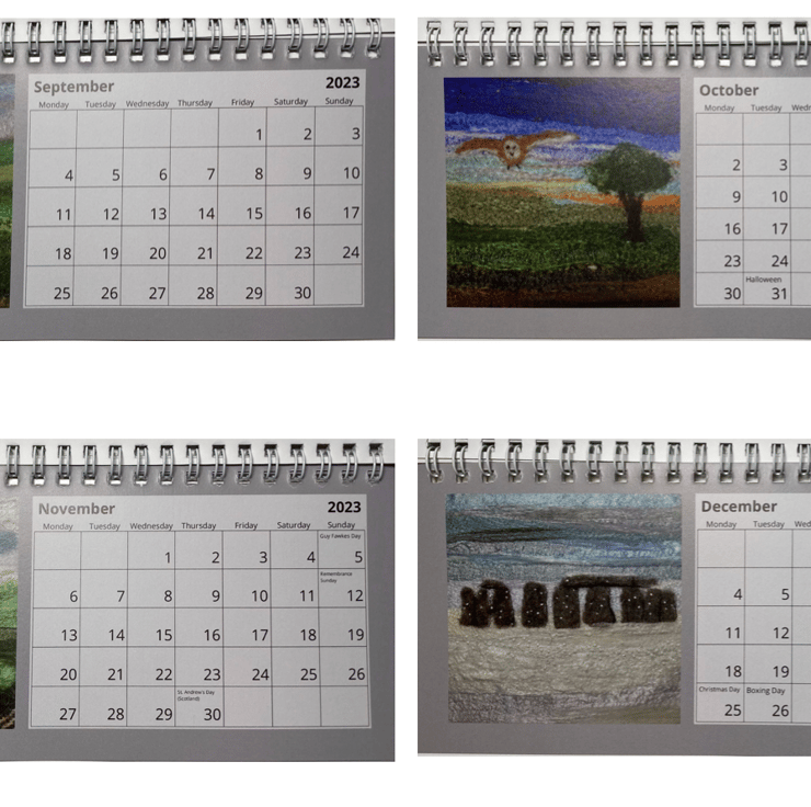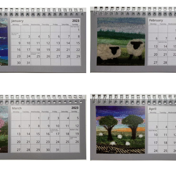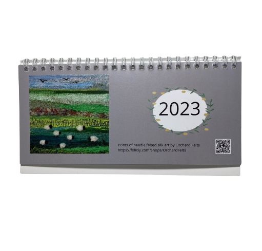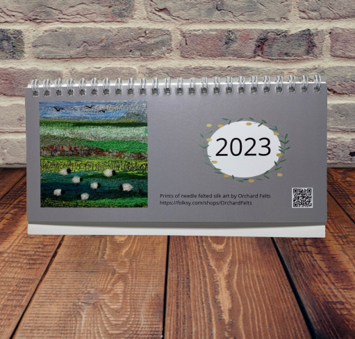 A gorgeous desk calendar measuring approximately 21cm x 11cm. This calendar has been printed using images of various needle felted silk textile art pictures that I have created. Each month has a different image and a dated area with sufficient space to add notes/appointments on each day. The main holidays and events occurring throughout 2023 have also been printed on the calendar. The calendar will be supplied with an A5 white envelope and will be wrapped in a cellophane sleeve.