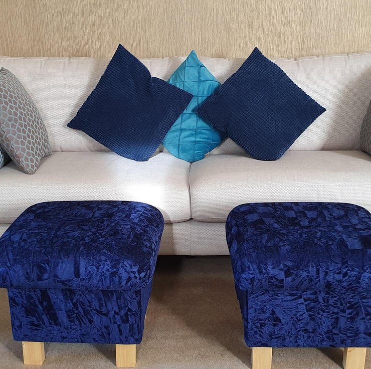 I am a professional upholsterer with over 33 years and have made this footstool myself, I am a professional upholsterer with over 33 years experience, and have handmade this adult sized STORAGE footstool using Plain Navy Blue Velvet fabric.