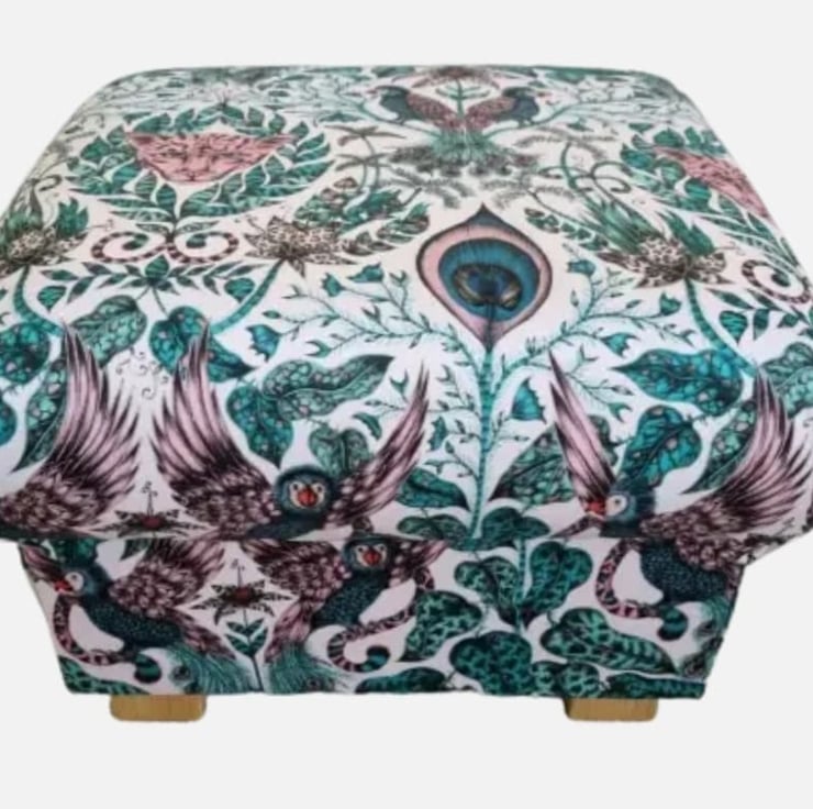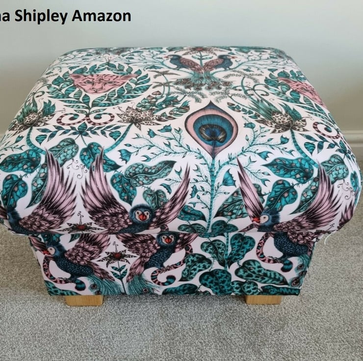 I am a professional upholsterer with over 33 years experience, and have handmade this adult sized STORAGE footstool using Emma J Shipley Amazon Pink fabric.
