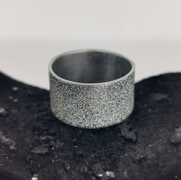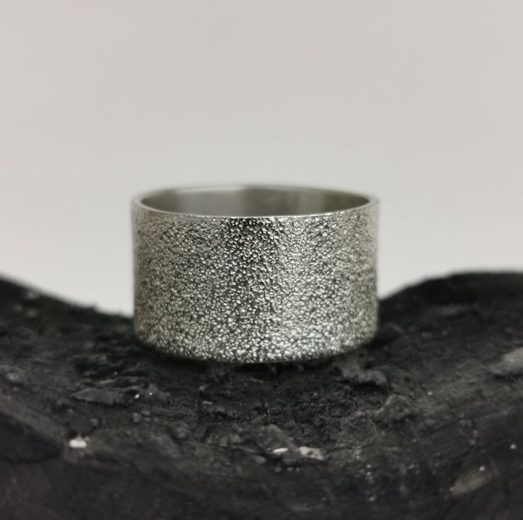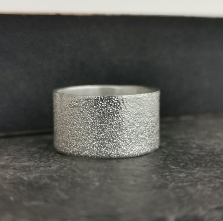 Handmade in sterling silver and textured with a sand effect. The rough finish gives the silver a glistening surface.