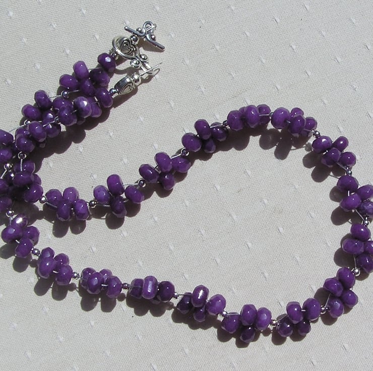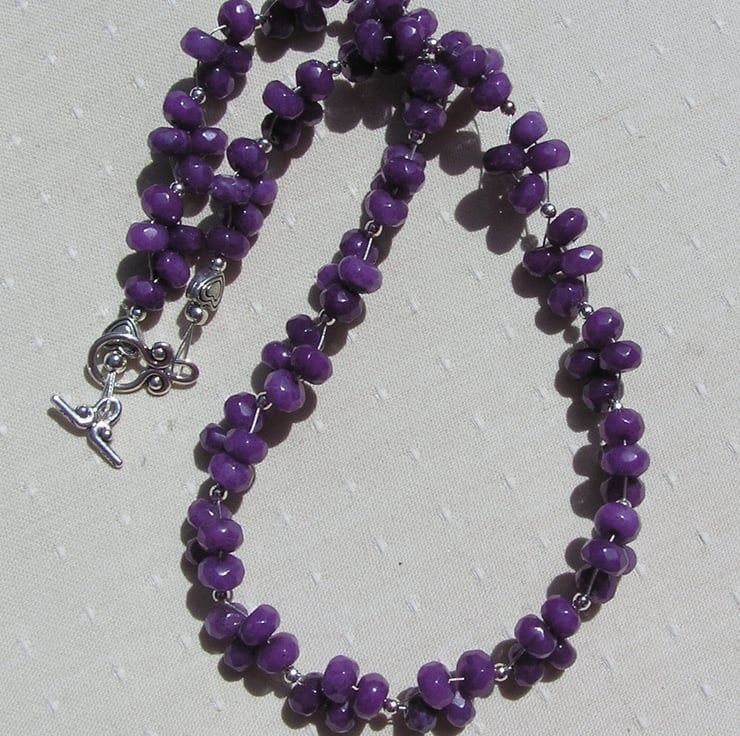 This Stunning Necklace is made wholly from Purple Jade faceted rondelle beads clustered together in four's and for that added bit of sparkle tiny Silver spacer beads - a Gorgeous Regal mix that will look stunning either worn casually or with something more Elegant for a Special Evening out