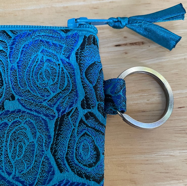 This beautiful Blue Roses accessory case is made from HiyaHiya’s usual brocade style and is fully lined. It has a handy key ring. The bag also has a zipped inside pocket.