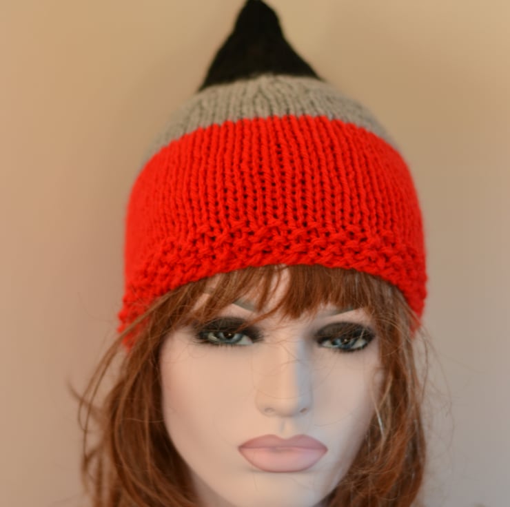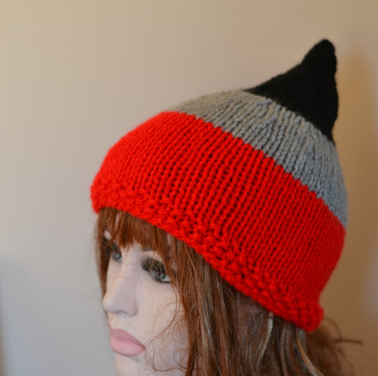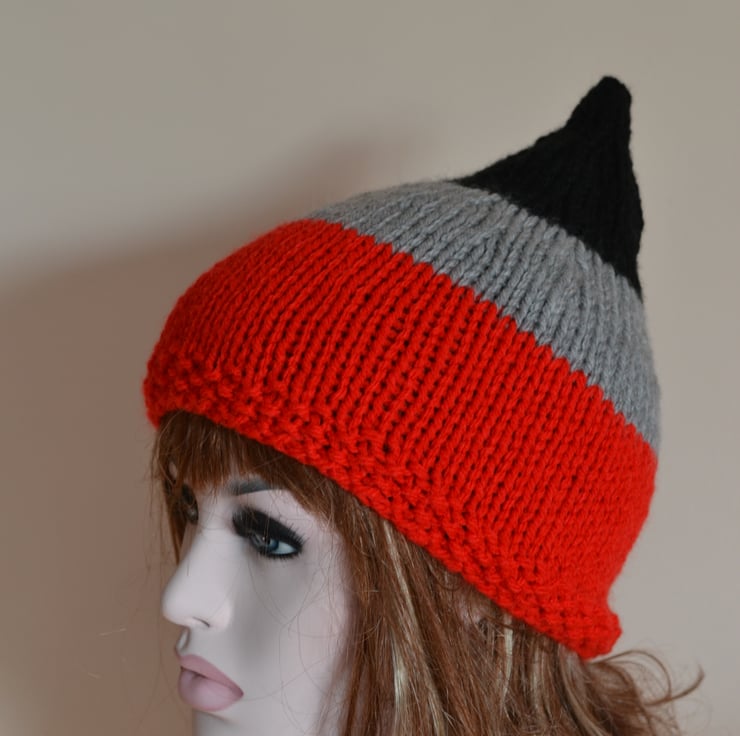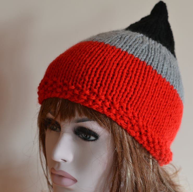 Womens chunky knit pixie hat. Made in 100% acrylic yarn. Fits heads 21" - 22".