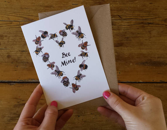 Alice's bees have flown into a heart formation to celebrate Valentine's Day! Perfect for those with an interest in Bees or Beekeeping, or flowers and pollinators.