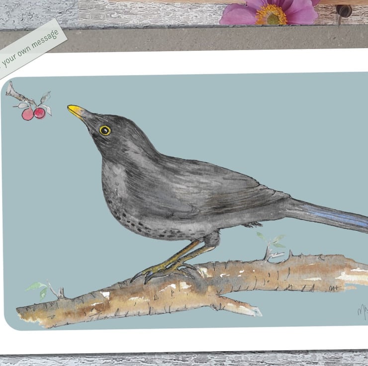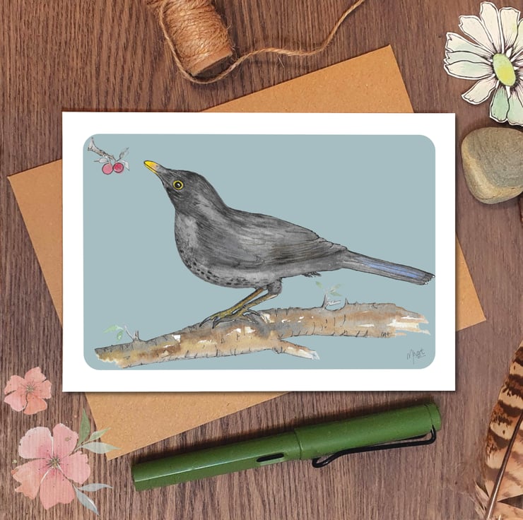 Mrs Blackbird is a lovely greeting card inspired by the very busy blackbirds in my garden.
