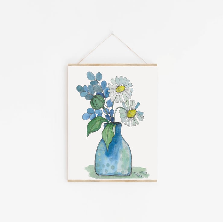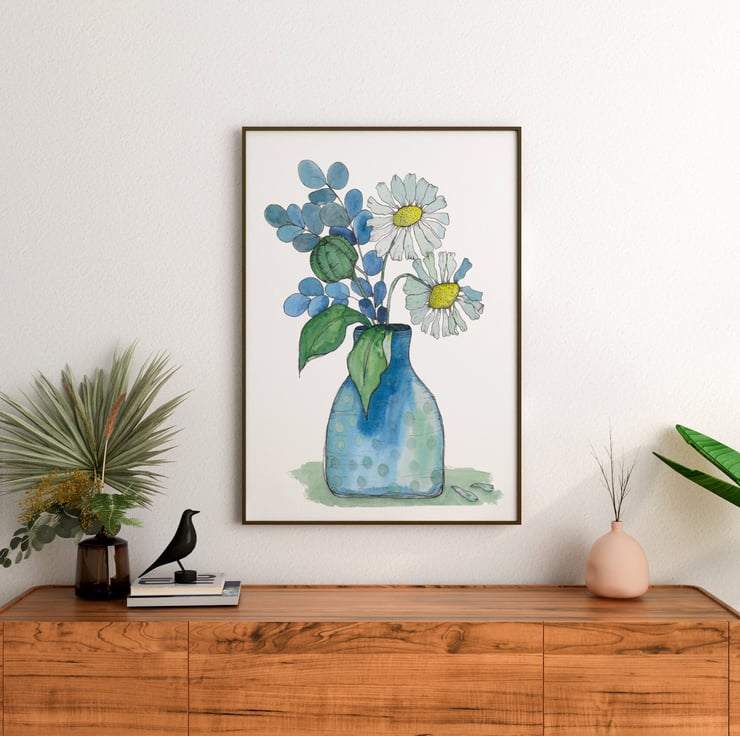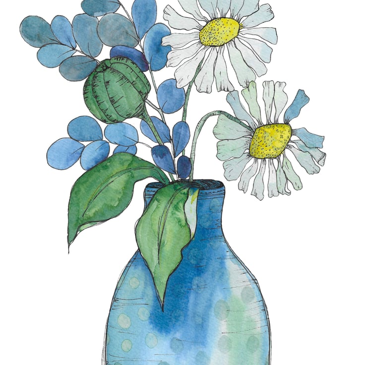 Daisy Blue is a painting of my all-time favourite flower, the daisy. Daisies for me are the epitome of innocence and a carefree childhood making daisy chains and playing with friends on a warm summer's evening, what is not to love?