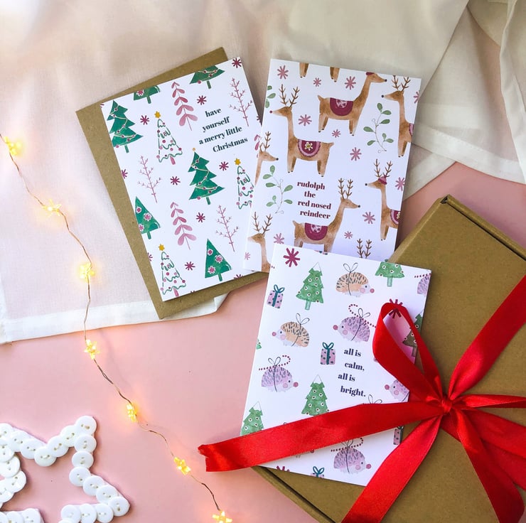Winter Animals Christmas Card Set Pack of 3, 6, 9 A6 Cards Reindeer, Hedgehog