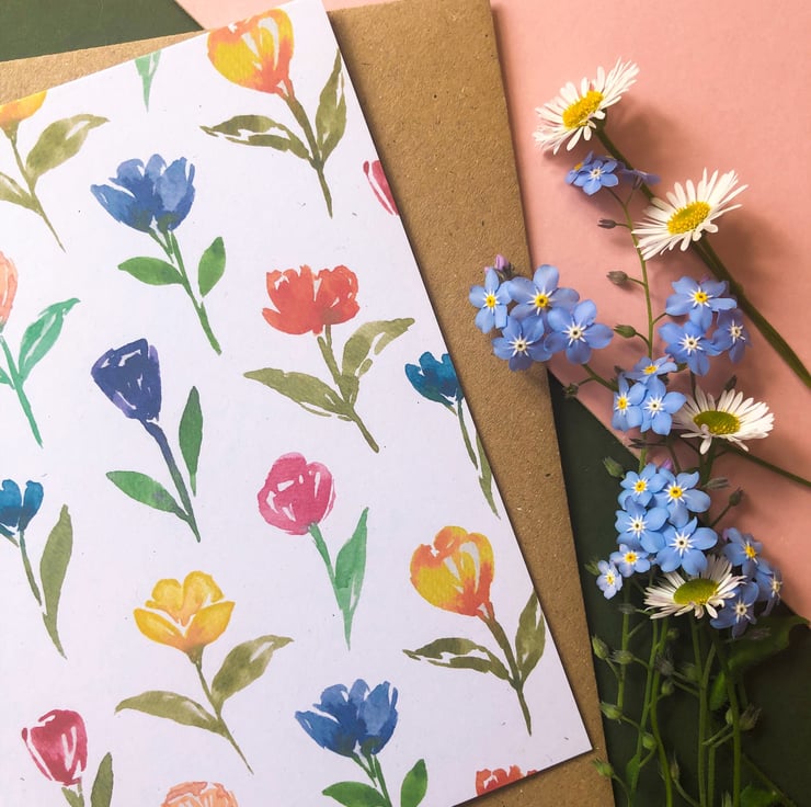 Each notecard is unique and features different watercolour flowers.