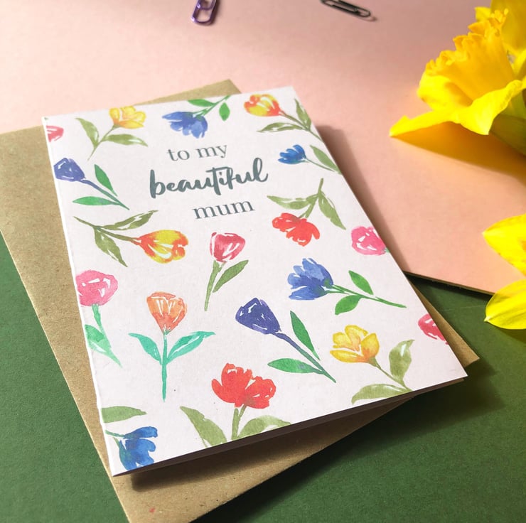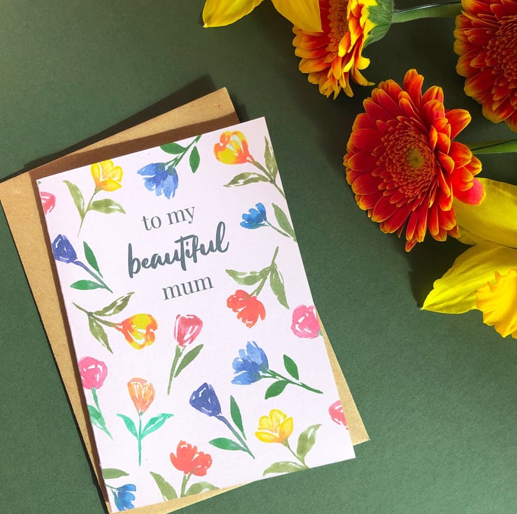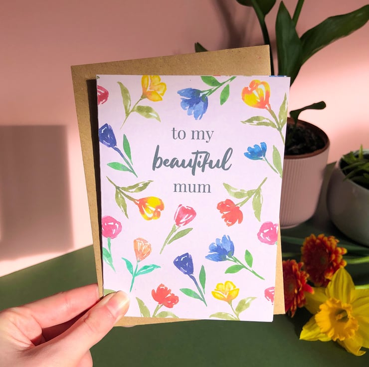 Got a beautiful Mum? This card is for her! Covered in watercolour wildflowers, this gorgeous pink card is perfect for her birthday or Mother's Day.