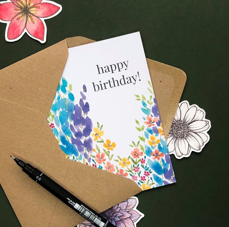 Say happy birthday with this gorgeous card inspired by wildflower fields. Theres buttercups, cosmos and more!