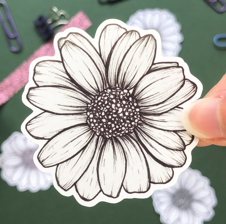Decorate anything you choose with a gorgeous Daisy sticker! Perfect for your laptop, planner, phone, bullet journal or anything else you may choose. Hand painted by me, this die cut sticker is printed on recycled matte vinyl. The adhesive on all the stickers is permanent and all are roughly 7cm x 7cm in size.