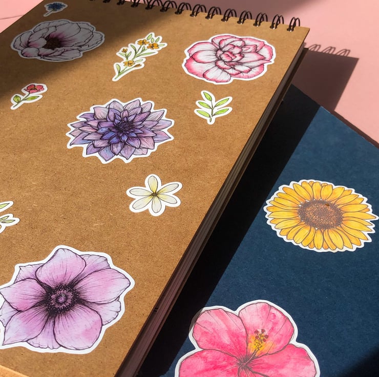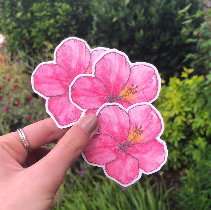 Decorate anything you choose with a gorgeous hibiscus sticker! Perfect for your laptop, planner, phone, bullet journal or anything else you may choose. Hand painted by me, this die cut sticker is printed on recycled matte vinyl. The adhesive on all the stickers is permanent and all are roughly 7cm x 7cm in size.