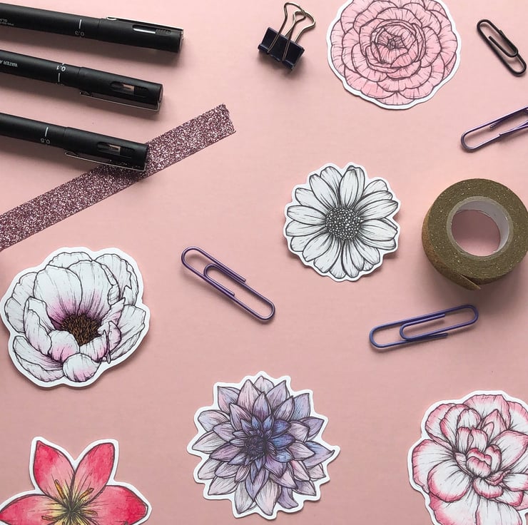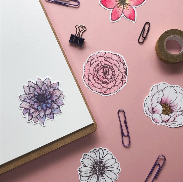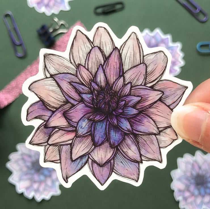 Decorate anything you choose with a gorgeous, best selling Dahlia sticker! Perfect for your laptop, planner, phone, bullet journal or anything else you may choose. Hand painted by me, this die cut sticker is printed on recycled matte vinyl. The adhesive on all the stickers is permanent and all are roughly 7cm x 7cm in size.