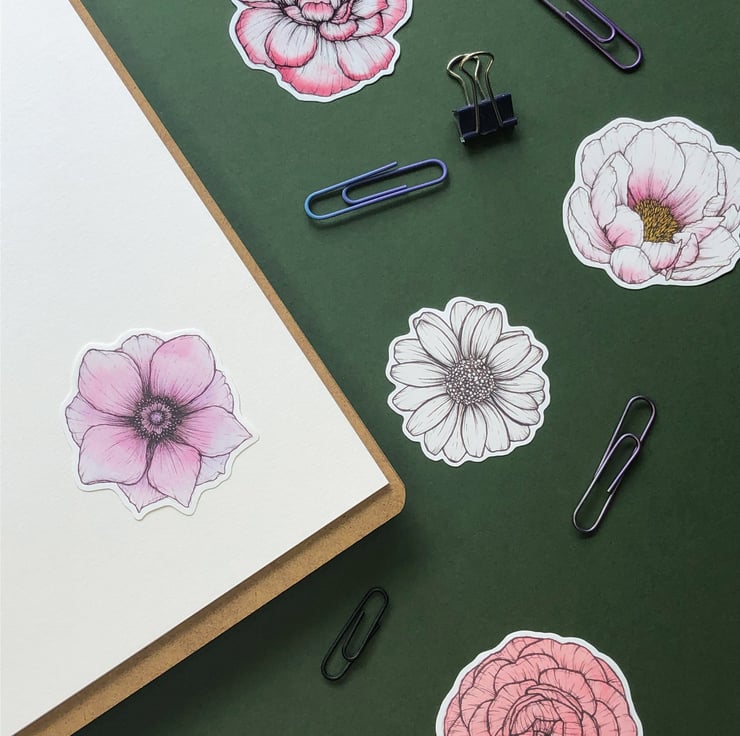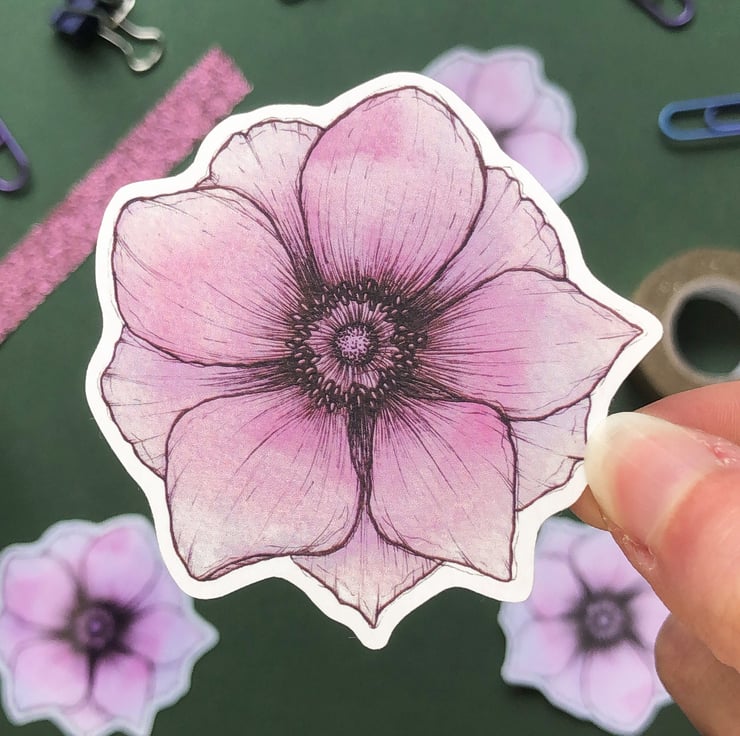 Decorate anything you choose with a gorgeous purple anemone sticker! Perfect for your laptop, planner, phone, bullet journal or anything else you may choose. Hand painted by me, this die cut sticker is printed on recycled matte vinyl. The adhesive on all the stickers is permanent and all are roughly 7cm x 7cm in size.