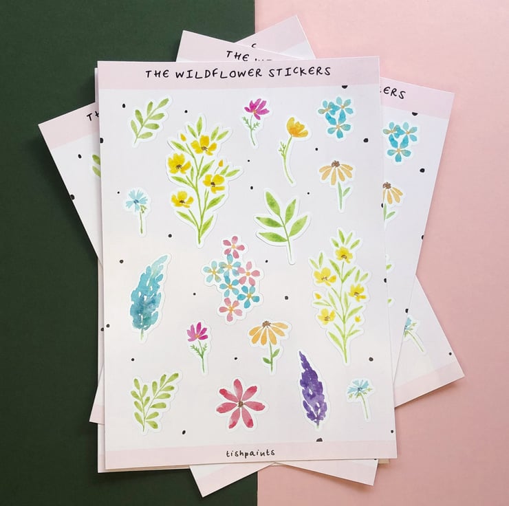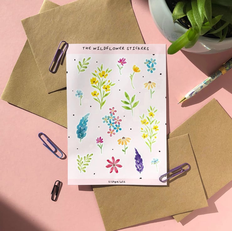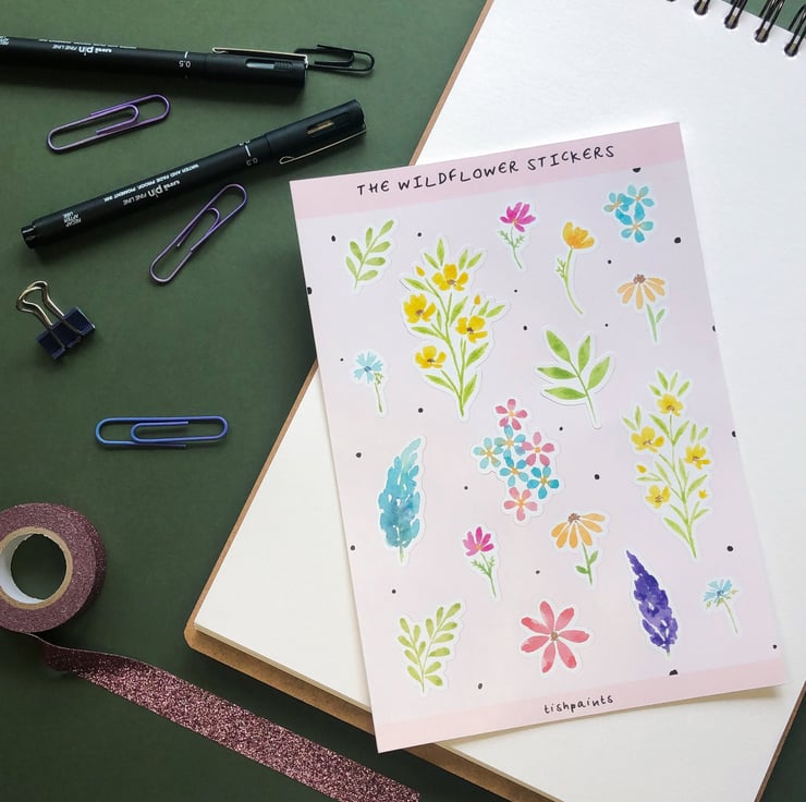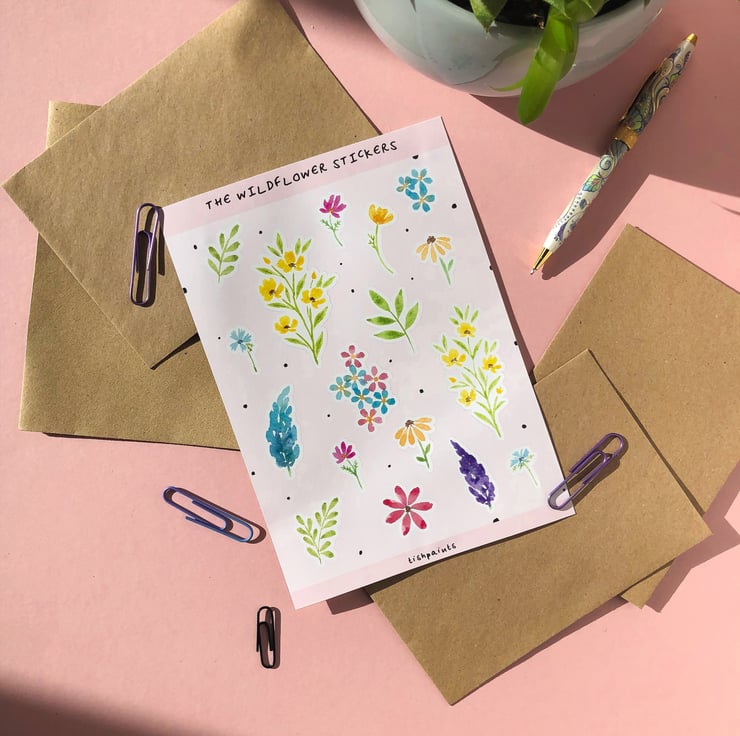Decorate anything you choose with these gorgeous wildflower watercolour stickers! Perfect for your laptop, planner, bullet journal or anything else you may choose! This A5 Sticker Sheet is part of the wildflower collection and features 17 stickers of various sizes, ranging from 2.5cm to 7cm in height. This minimalist set has been designed to look like you've painted the flowers yourself and stuck them wherever you choose!