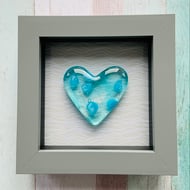 The fused glass panel is approximately 10cm x10cm and the frame is 15 x15cm