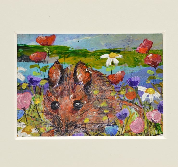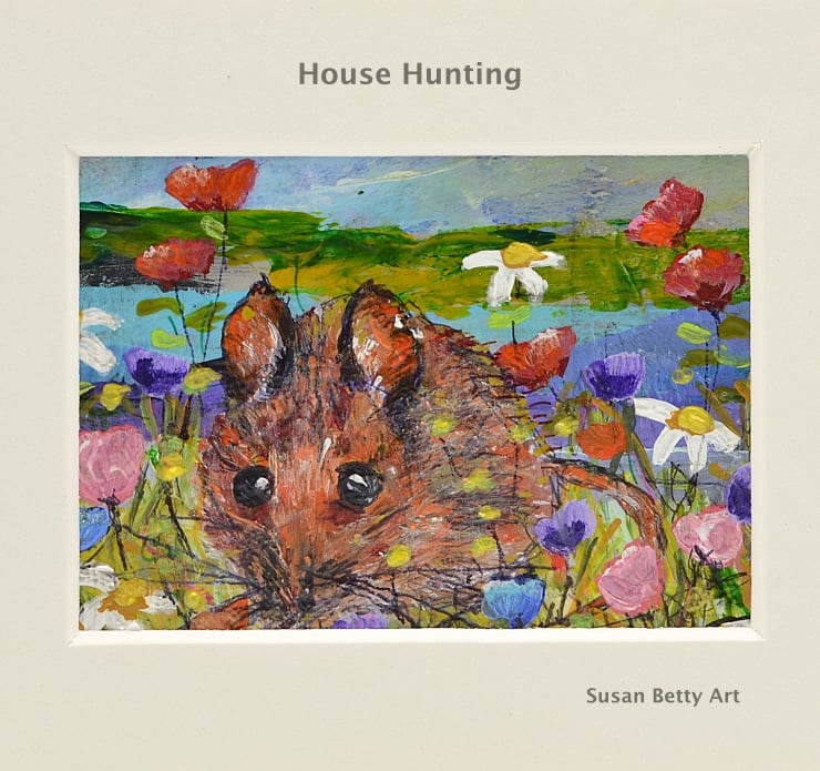 This wee ACEO is called, "House Hunting". Although cute, these wee critters can sound like baby elephants if they find a way into your home! This art card would make an ideal gift for any collector of art for any occasion.