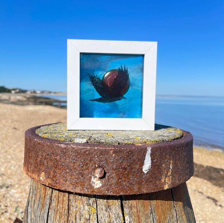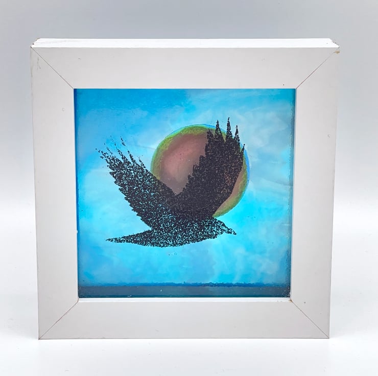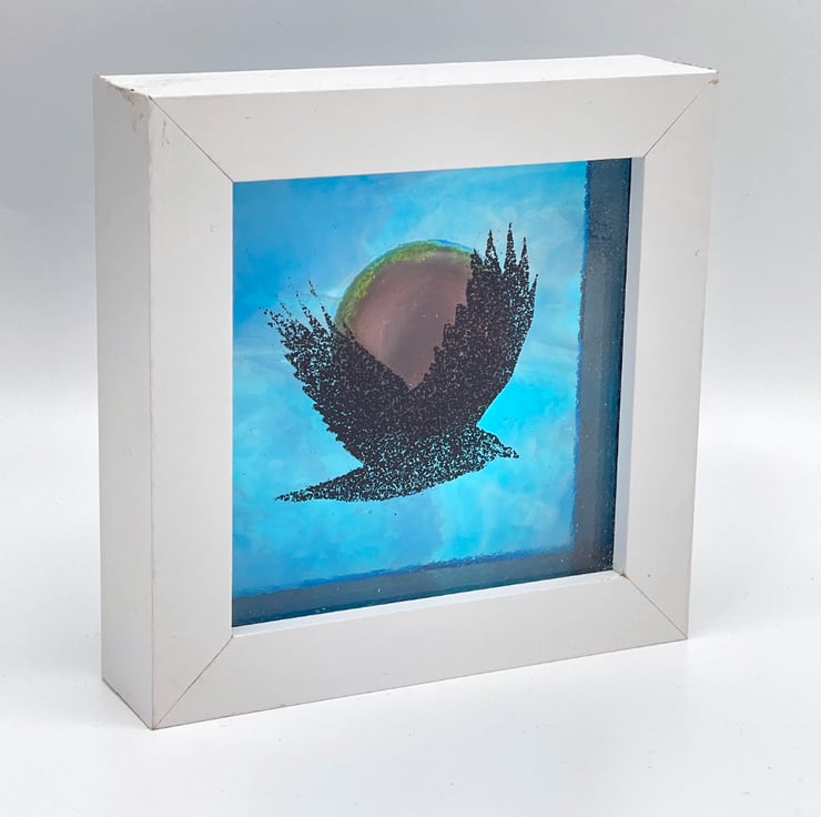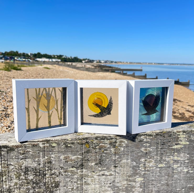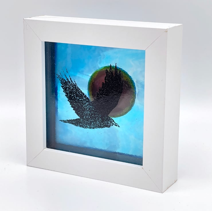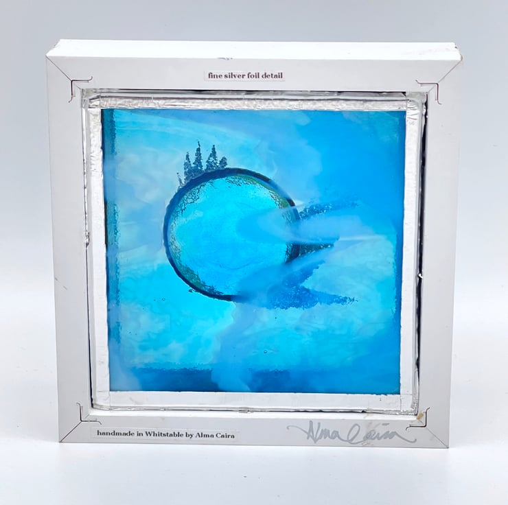 Beautiful fused glass artwork designed to sit on a bright windowsill to allow the light to pass through. Created in my Whitstable garden studio using 2 decorative sheets of Bullseye glass to add depth to the design.