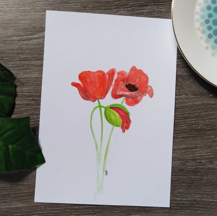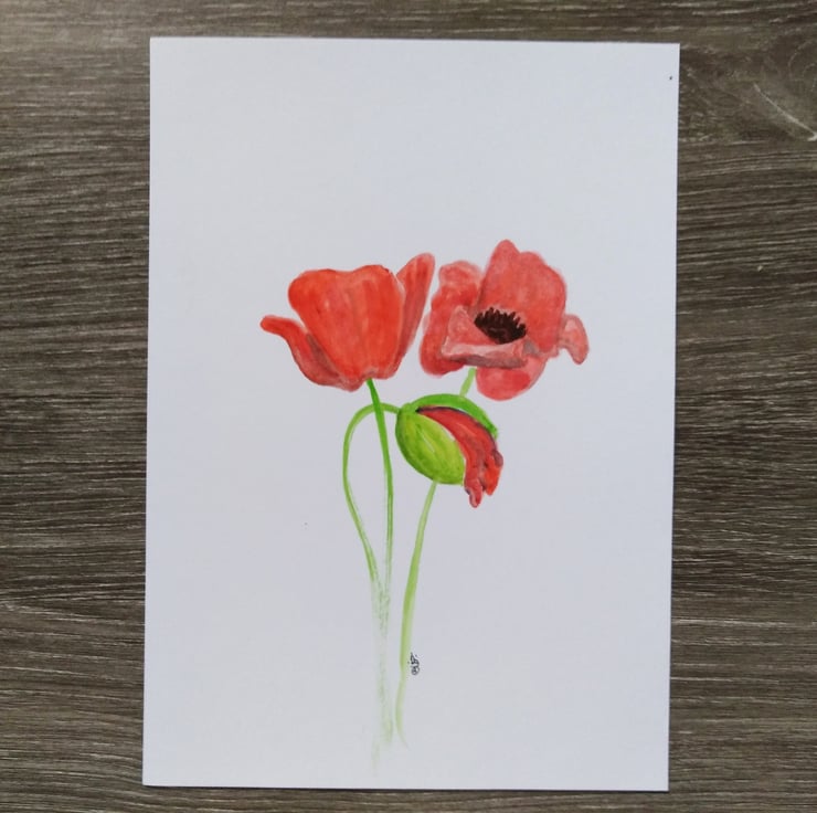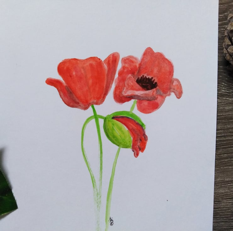 An original watercolour painting, featuring three red poppy flowers, painted in an expressive, yet minimalist style. This art will be a lovely addition to your decor in any room, bringing a pop of colour to your wall or a great gift for a nature lover.
