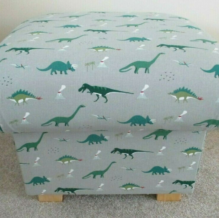 I am a professional upholsterer with over 33 years and have made this storage footstool myself, using Sophie Allport Dinosaurs fabric.