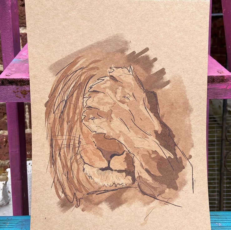Oh no Lion! I think we've all felt like that at some point or another. This lovely hand drawn illustration is printed on a fabulous A4 Hairy Manilla (Kraft Brown) 280g - 100% recycled (origin UK from 100% post consumer waste). Made and printed in the UK