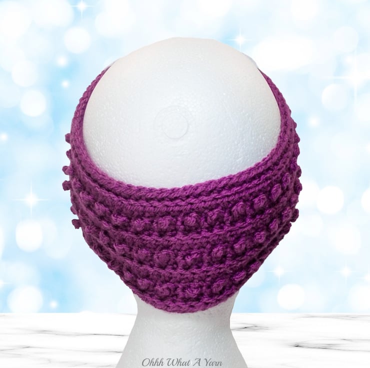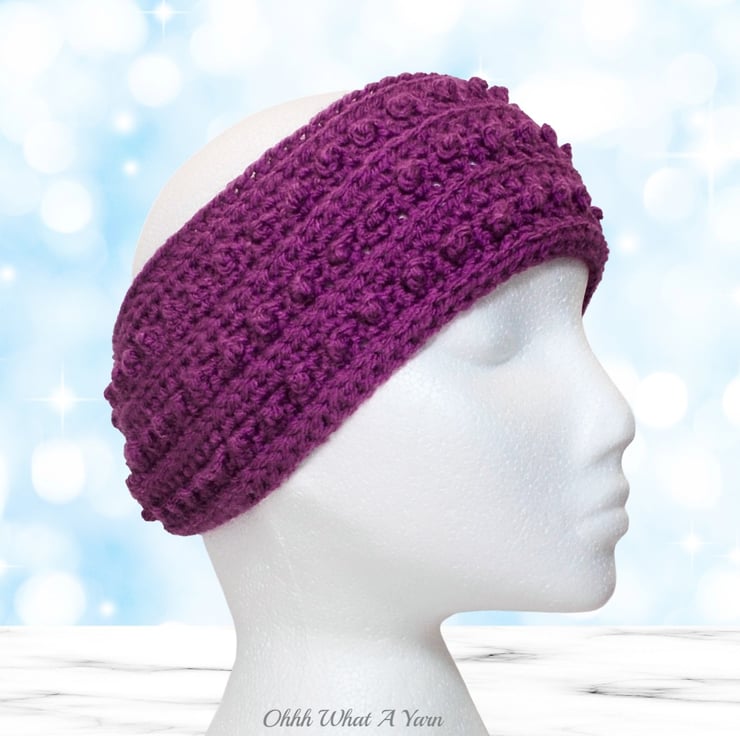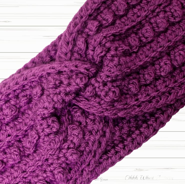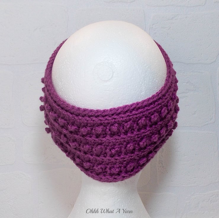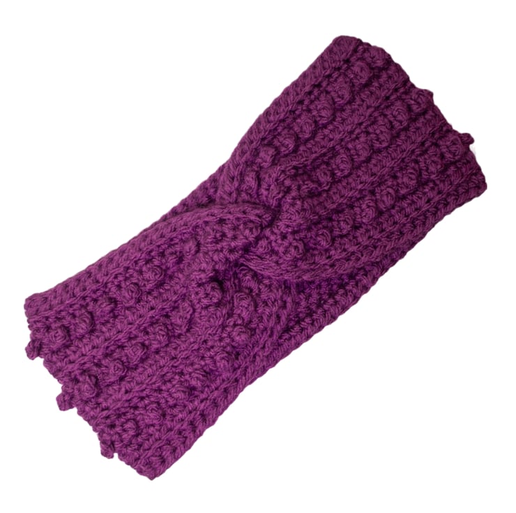 This cosy plum/purple coloured one size ladies ear warmer/headband has been crocheted using a gorgeous 100% acrylic aran weight yarn.
