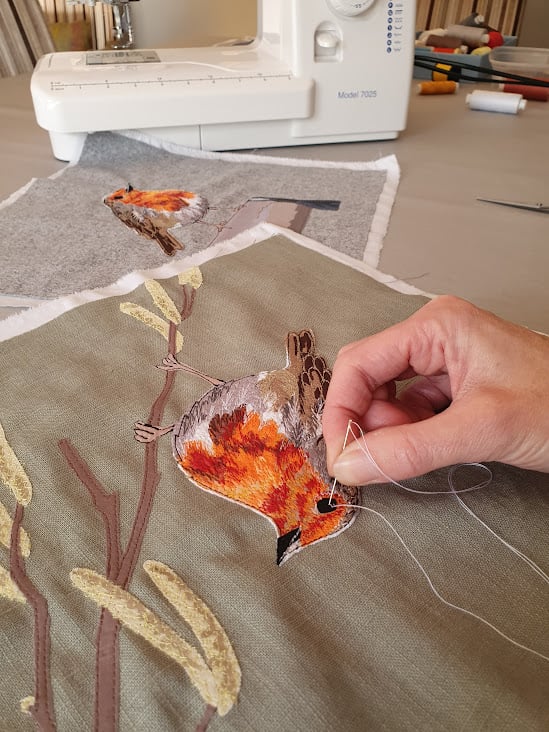Inspired by British wildlife, I create textile art using a combination of appliqué and freehand machine embroidery. My designs are available as framed original pieces, as handmade hanging decorations, and as printed cards and homeware (from digital scans of the original designs).