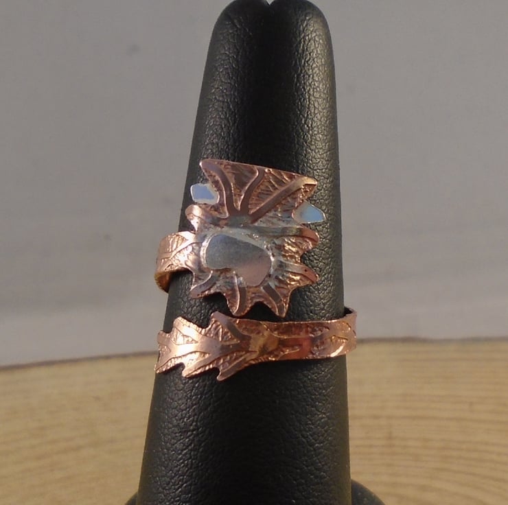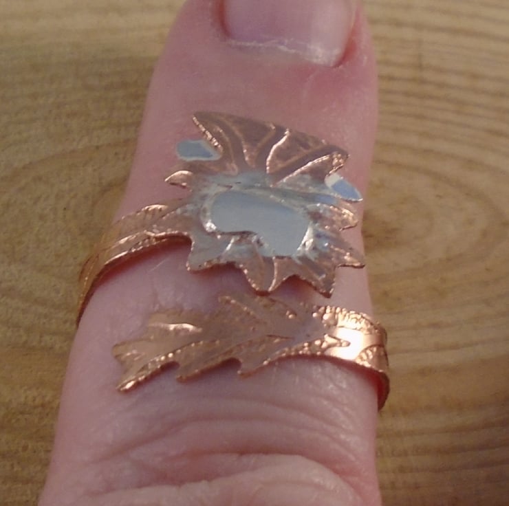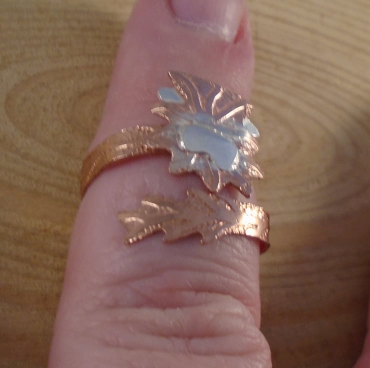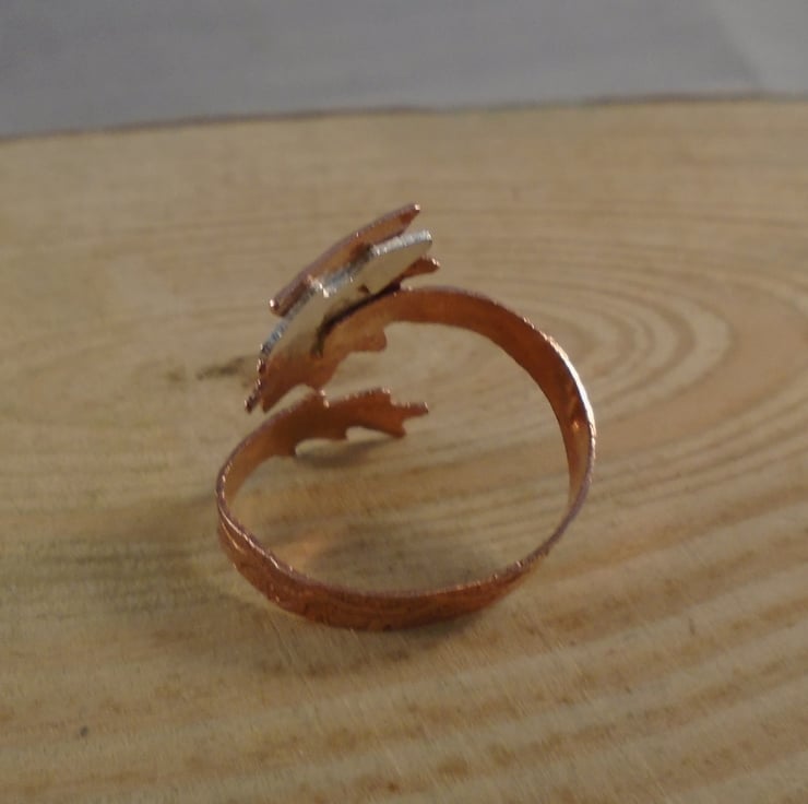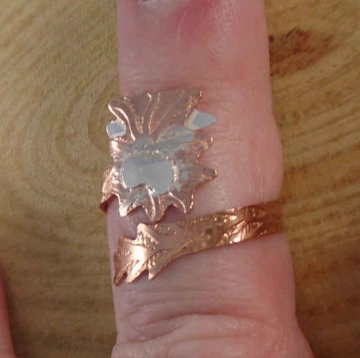 A quirky highland cow ring, ideal for your cow loving friends! The shape of the highland cow head has been hand pierced from a sheet of copper, and etched to give fur details. Sterling silver horns and a nose have then been soldered on. The ring shank which leads to the cow tail has been hand pierced from copper and again etched. It has then been soldered on to the head and bent around a ring mandrel to form an adjustable ring.