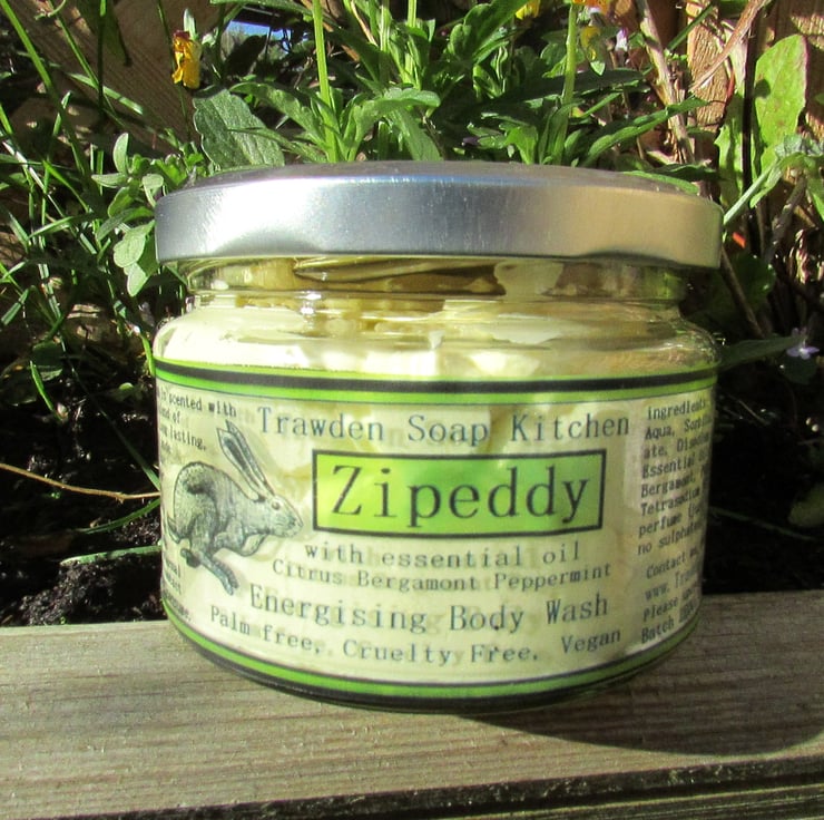 Zipeddy is a long lasting, creamy body wash. It is enriched with Organic hemp oil (full of anti oxidants) & an invigorating blend of essential oils: Orange, Mandarin, Lime, Bergamot & Peppermint.