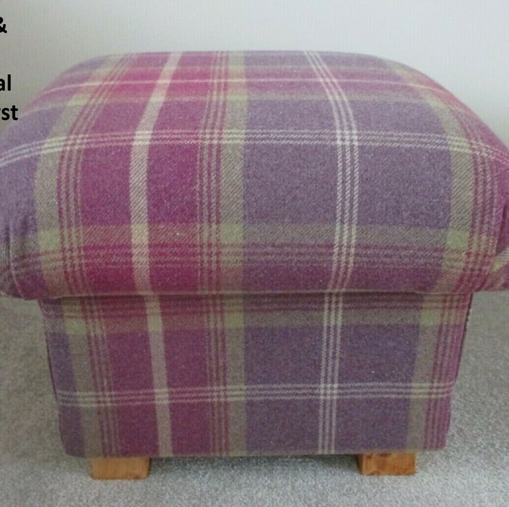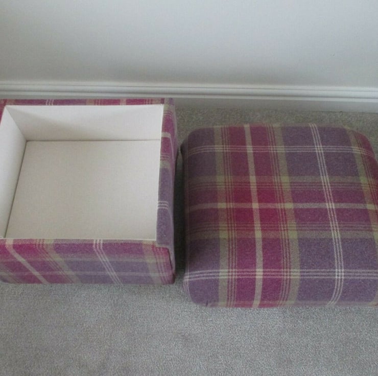 I am a professional upholsterer with over 33 years and have made this storage footstool myself, using Porter & Stone Balmoral Check Amethyst fabric.