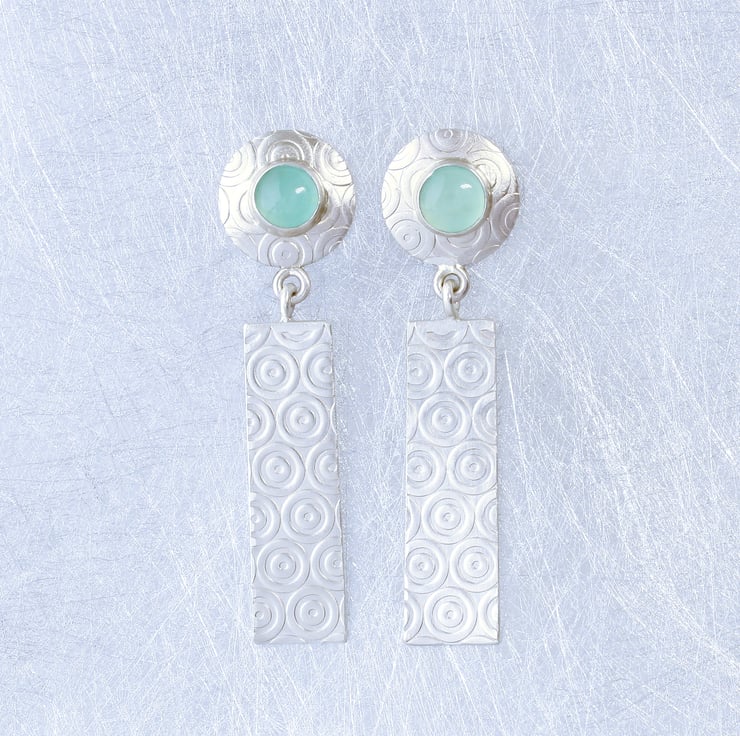 This elegant, handmade brooch was designed and handmade by us in our workshop in Yorkshire. It measures 30mm in diameter, is slightly domed in shape, and is made from sterling silver with a satin matt finish. It features an 8mm Aqua Chalcedony gemstone, our maker's mark 'J&DF' and a '925' sterling silver stamp is embossed on the back of the brooch.