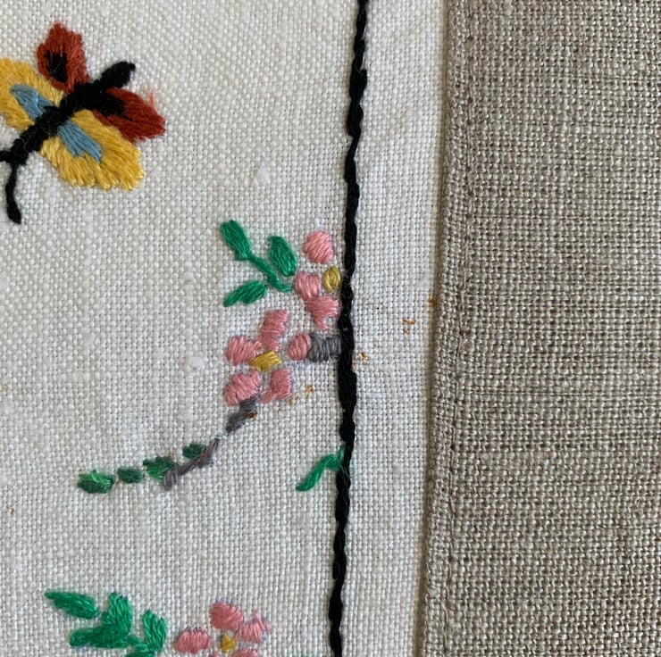 Please note there are some tiny rust spots on the edge of the embroidery which are shown in the penultimate photo.
