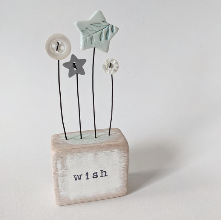 This piece is one of a kind, created from my love of making, exploring and mixing different materials to make a pretty scene that brightens any day.
