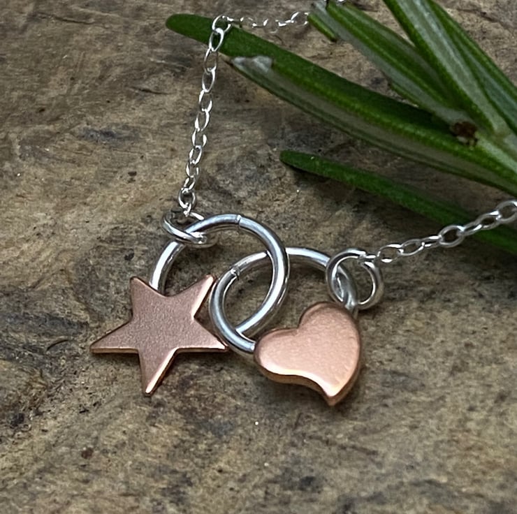 Sweetheart Star Copper and Sterling Silver NecklaceNecklace Small Tiny