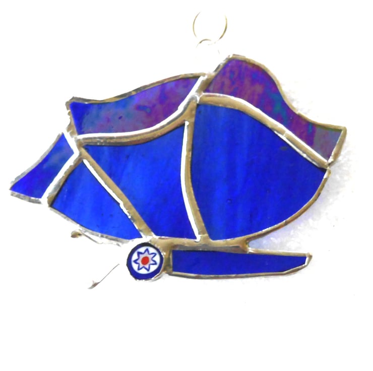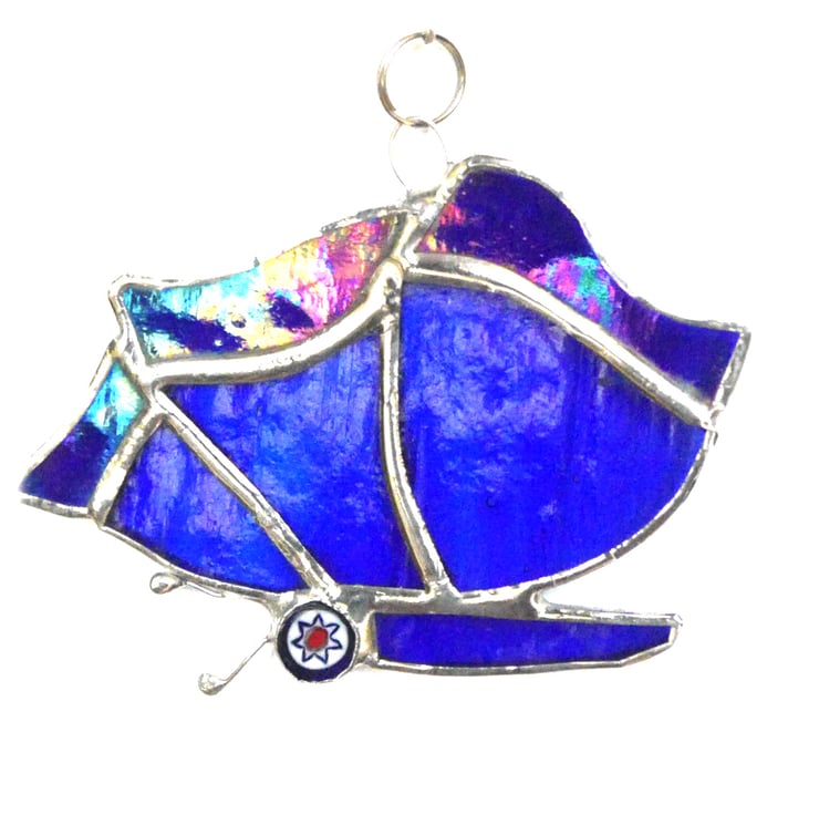 This is a stained glass suncatcher made using the Tiffany copper foil technique.