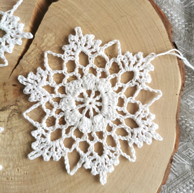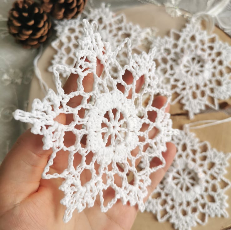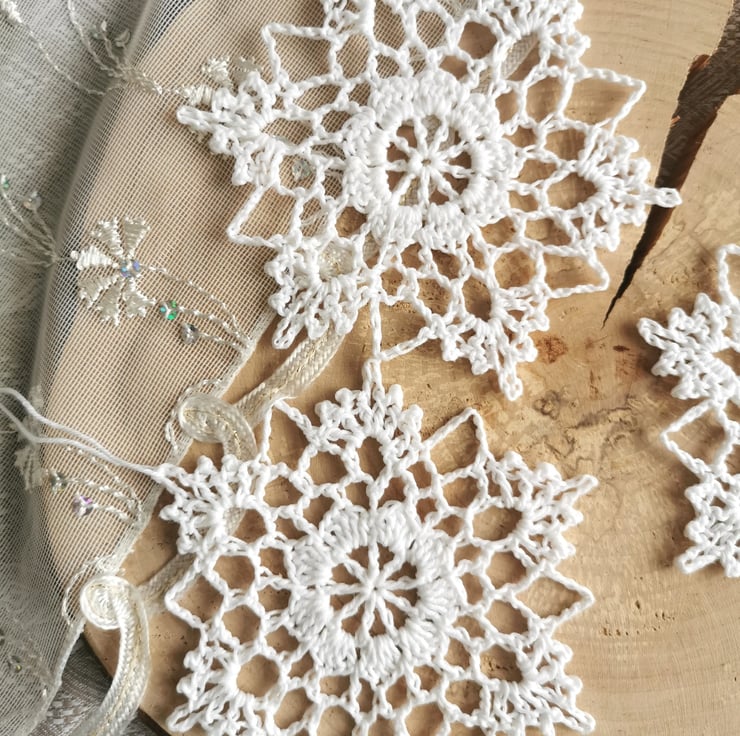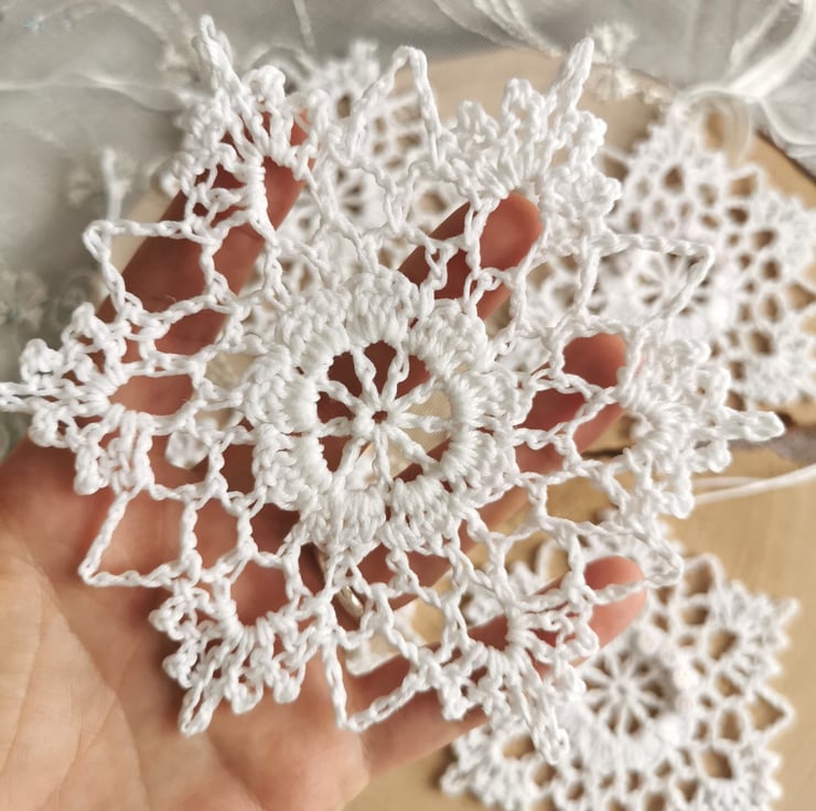 Please note that each snowflake is handmade, and sizes may vary slightly.