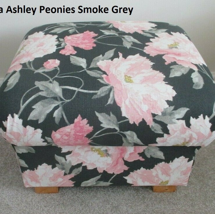 I am a professional upholsterer with over 33 years and have made this storage footstool myself, using Laura Ashley Peonies Charcoal Grey fabric.