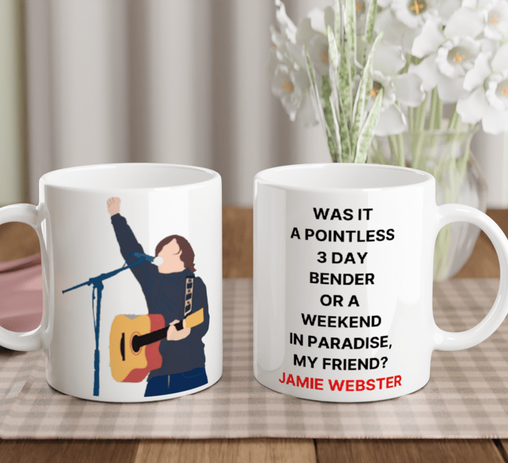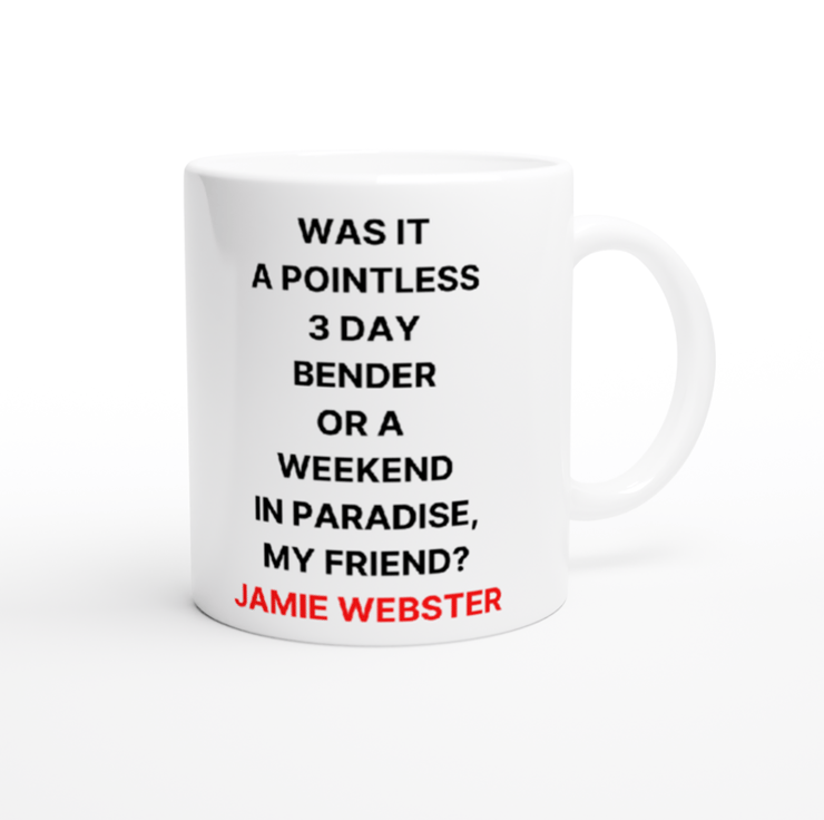 Standard sized coffee mug featuring Jamie Webster.