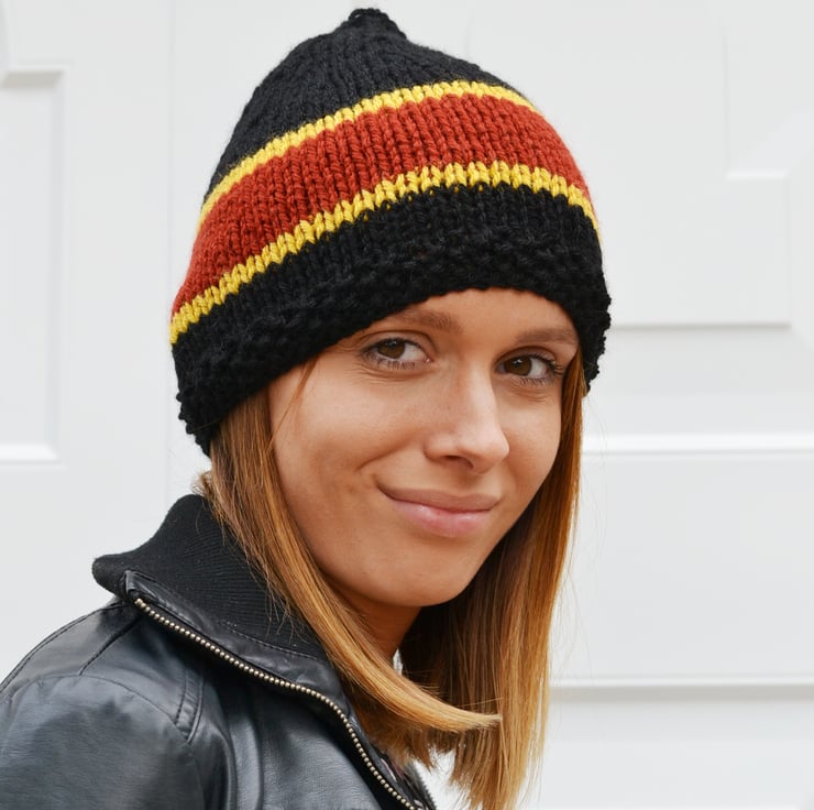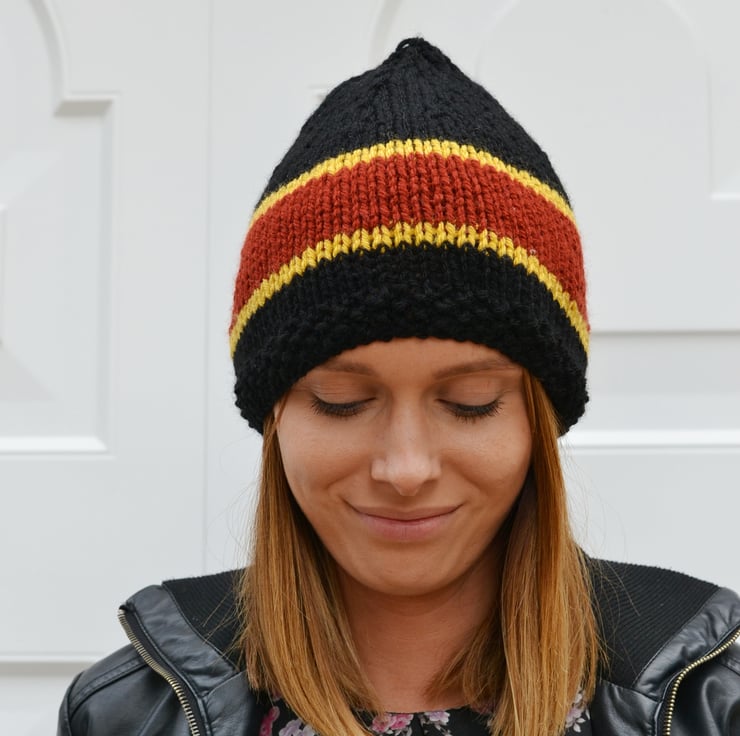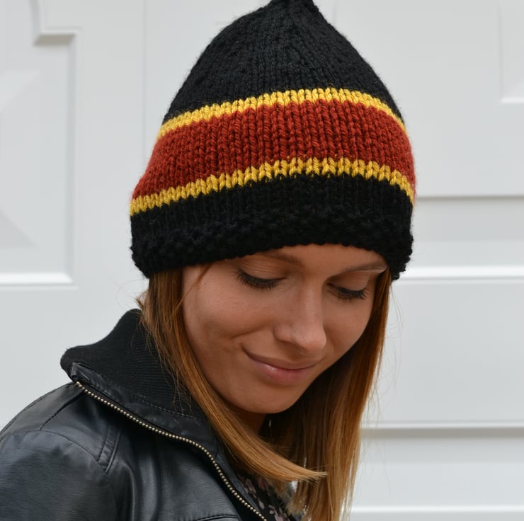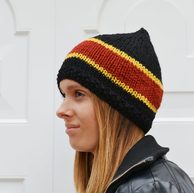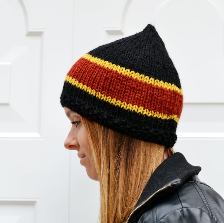 Womens chunky knit pixie hat. Made in 100% soft acrylic yarn. Fits heads 22" - 23".