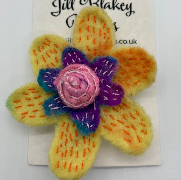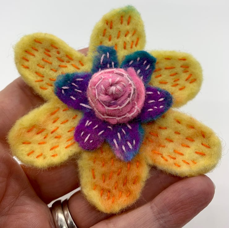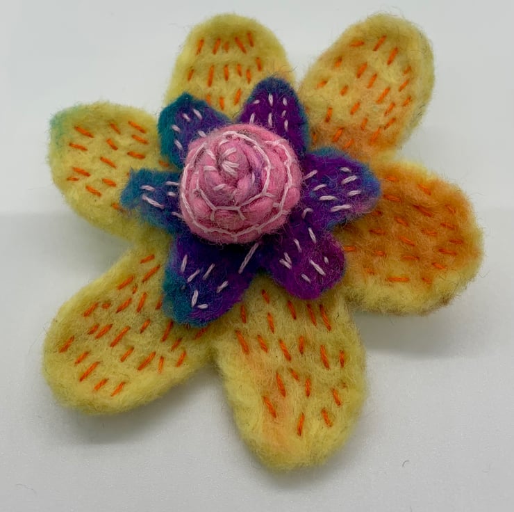 Hand felted and embroidered flower brooch. Unique and original design, handmade from quality materials.