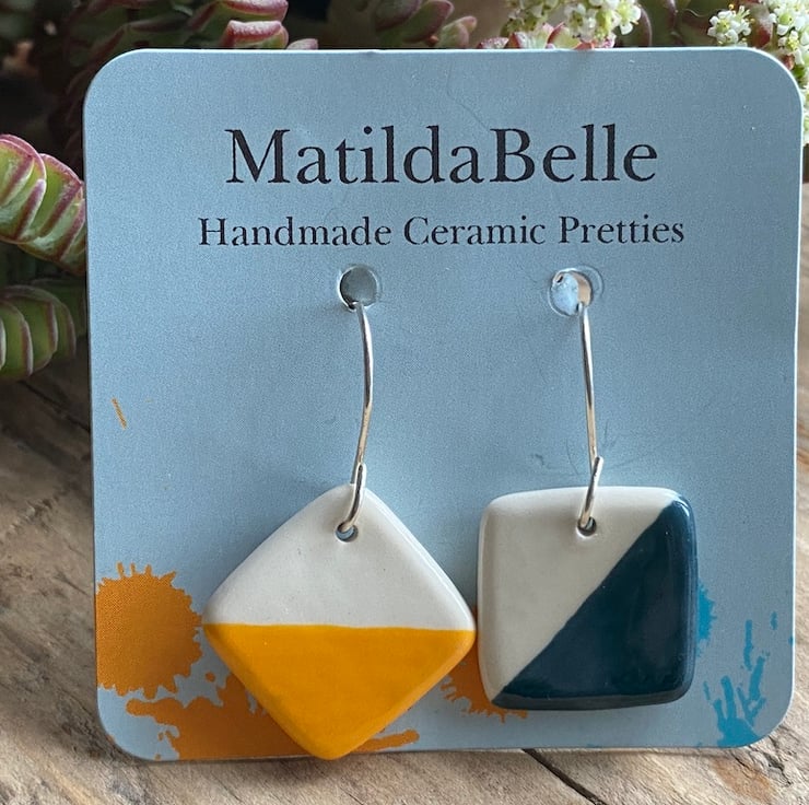 Stunning handmade ceramic Mismatched drop earrings from the Painterly range here at MatildaBelle.